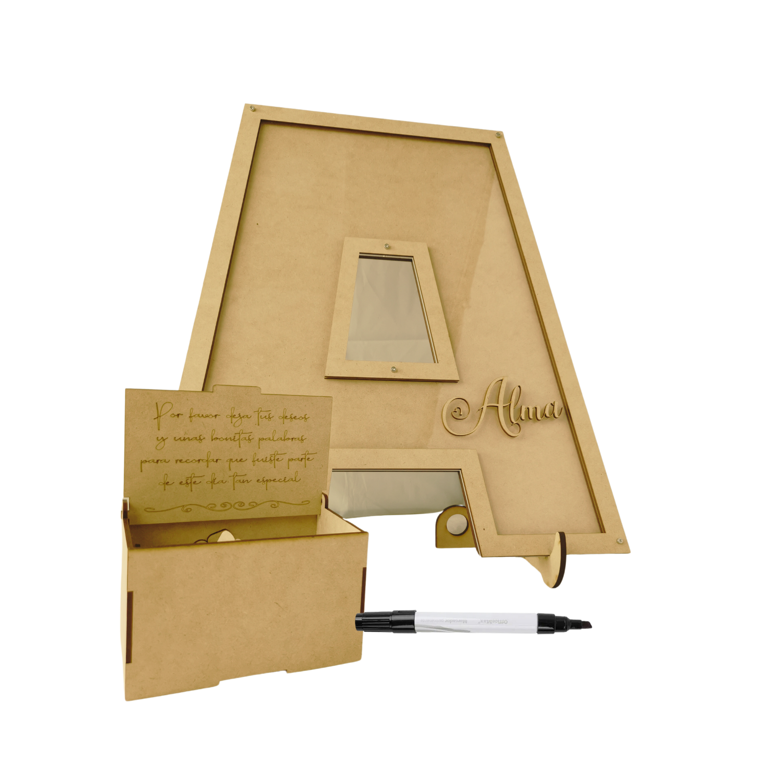 Es un cuadro de firmas circular con diseño de marco de pino, ideal para capturar mensajes y buenos deseos en momentos especiales. Perfecto para bodas, aniversarios, cumpleaños, graduaciones y cualquier celebración que desees recordar con un toque significativo y decorativo.